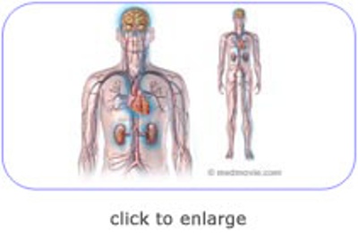 그림 : 고혈압과 관계가 깊은 심장, 신장, 뇌, 혈관등의 모습.